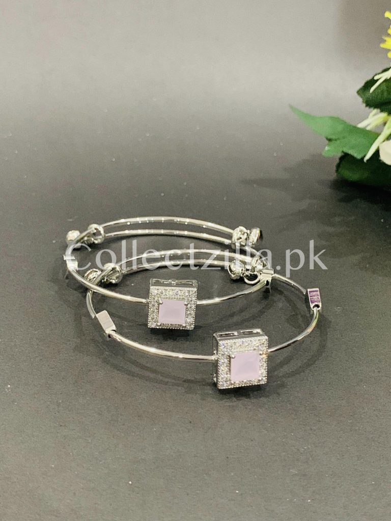 Adjustable Adult Bangle-80 (Silver/Pink)