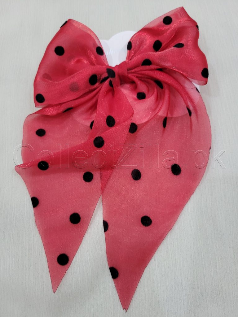 1pc Korean Long Bow Polka Dot Floral Print Hair Clips